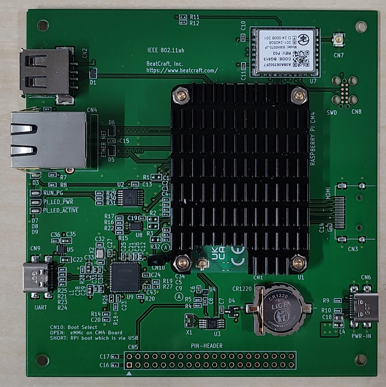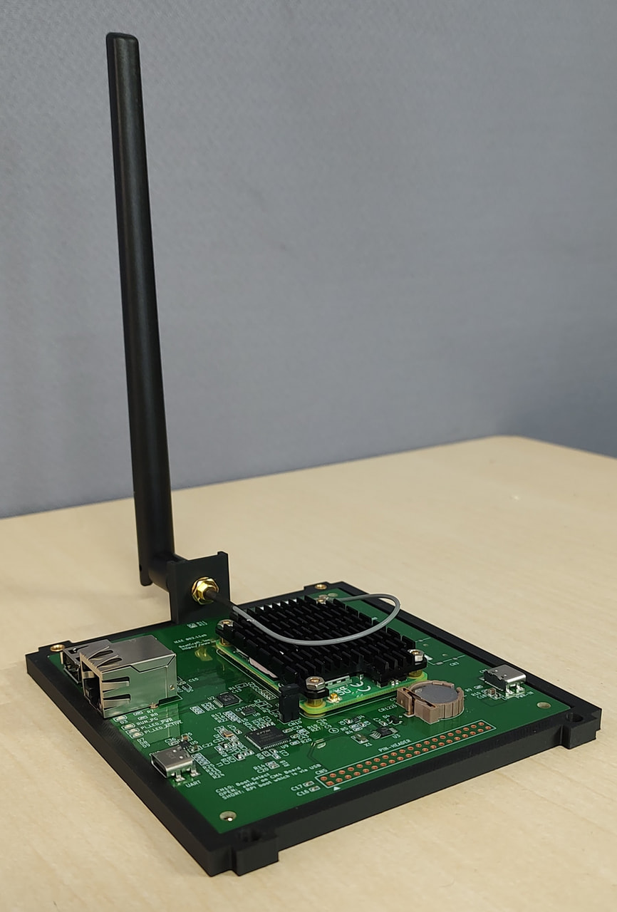 写真のように、CM4 装着用ヒロセコネクタを備え、 IO、周辺機器 として