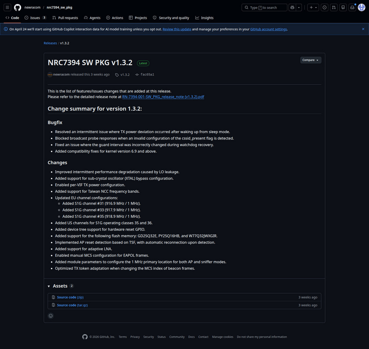 https://github.com/newracom/nrc7394_sw_pkg/releases/tag/v1.3.2
